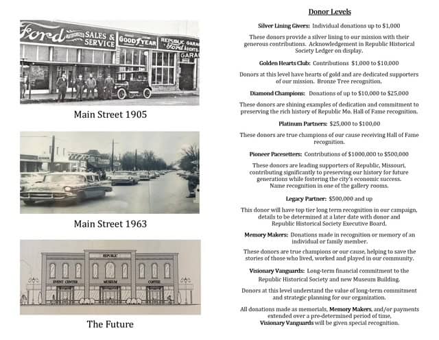 This new facility will preserve Republic’s past while creating opportunities to bring people together in meaningful ways. It’s a place where residents and visitors can connect, learn, and celebrate the rich heritage of our community. Every donation to the New Museum Project helps turn this vision into a reality.